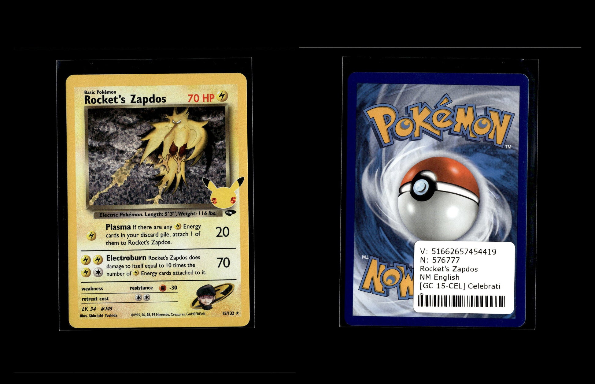 Rocket's Zapdos - Celebrations #GC 15 [Holo Rare]